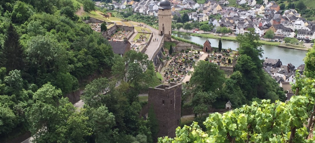 In einem gemütlichen kleinen Restaurant mit fantastischem Ausblick auf die Mosel und die Weinberge aßen wir Flammkuchen bzw. Kartoffelrösti mit Gemüse. Auf einem der Weinberge auf der anderen Uferseite wurde an diesem Wochenende ein Weinlagenfest veranstaltet. Da es erst kurz nach um neun war, machten M und ich uns natürlich auf den Weg dorthin und genossen bei einem Glas Mosel-Rotling unsere ersten Eindrücke von der wunderschönen Stadt mit Blick auf die abends beleuchtete Reichsburg. Gegen Mitternacht verließen wir das in ruhiger Umgebung gelegene Weinlagenfest und traten zu Fuß den Rückweg zum Hotel an.