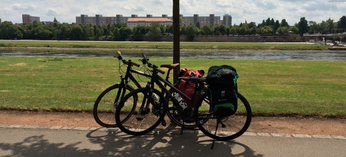 Einen Tag vor unserer geplanten Anreise in Dresden war schon so gut wie alles vorbereitet. Die vier Fahrradtaschen, die nur mit dem Nötigsten gefüllt wurden, sowie unser Proviant-/Erste Hilfe-Rucksack standen abfahrbereit im Flur. Die Wetter-App sagte hervorragendes Wetter voraus, weshalb überwiegend leichte Sommerbekleidung den Weg in unsere Taschen fand. Da an einem Tag auch ein Gewitterbild auftauchte, packte ich sicherheitshalber auch Regensachen mit ein.