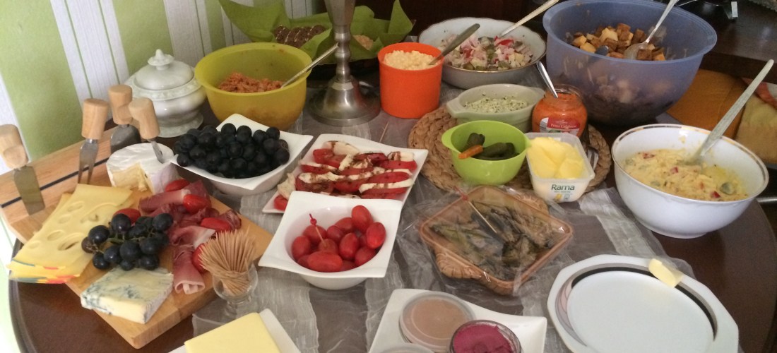 Viertel nach neun liefen wir mit Prinzi den einstündigen Weg zu Ms Mama, die heute ihren 59. Geburtstag feiert und zum Brunch eingeladen hatte. Ms Schwester sowie sein Onkel und dessen Frau – M hat die beiden über zehn Jahre nicht mehr gesehen – waren bereits da. Etwas später traf noch Ms Tante ein.