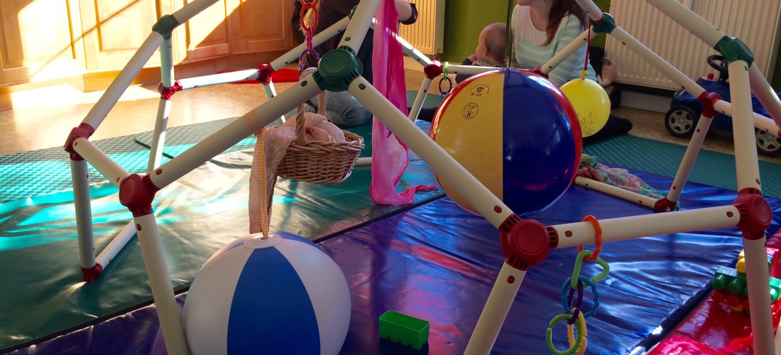 Heute waren nur sieben von elf Kindern anwesend. Es war unglaublich ruhig. Aufgebaut waren ein kleines Trampolin und eine Art Klettergerüst, an das verschiedene Spielsachen gehängt werden können. Die Kinder hatten sichtlich Freude daran ❤