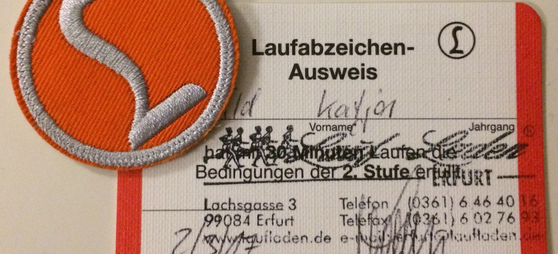 Wir aßen eine Kleinigkeit, hingen nochmals Wäsche auf, kochten das Abendessen und telefonierten mit meinen Eltern. Anschließend zog ich meine Laufsachen an und spazierte mit Prinzi und L gemütlich zum Treffpunkt. Ms Schwester und S, der L während des Laufs eine halbe Stunde bespaßte, waren bereits da. Wenig später traf auch M ein. Wir machten uns auf den Weg zum Egapark Erfurt, sahen aber, dass eine improvisierte Laufstrecke auf dem Parkplatz gegenüber mit Hütchen errichtet wurde. Wegen des starken Windes war der Egapark heute den ganzen Tag geschlossen. Obwohl es abends um sechs nicht mehr stürmte, durfte der Veranstalter Laufladen Erfurt mit uns Läufern nicht auf das Gelände. Ms Schwester und ich meldeten uns an – S und M holten zwischenzeitlich die Autos – und liefen kurz vor halb sieben los, um uns das Laufabzeichen für eine halbe Stunde zu verdienen. M war nicht angemeldet und lief aus Spaß mit uns mit. Die ersten zehn Minuten waren wir dem Regen und Wind ausgesetzt. Danach war es sehr angenehm.