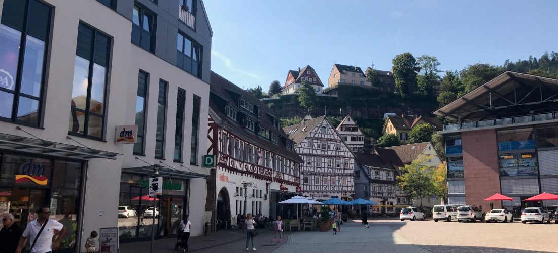 In Calw aßen wir Eis und kauften eine Packung Nudeln, etwas Gemüse und einige Bücher. In der Buchhandlung zerstörte L eine Schüssel, weshalb M aus schlechtem Gewissen ein weiteres Buch kaufte. Auf unserem Spaziergang bewunderten wir die schöne Innenstadt und ließen L eine Weile auf dem Spielplatz toben. Von etwas älteren russischen Kindern bekam sie sogar ein Eis am Stiel geschenkt 😉