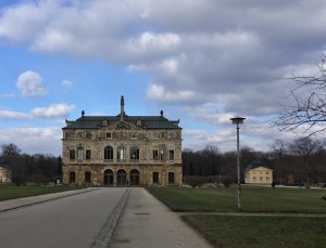 J und ich aßen die letzten beiden Stücken der gestrigen selbstgemachten Pizza, duschten und spazierten zum Großen Garten. Wenn der Wind nicht gewesen wäre, hätte uns die Kälte an diesem sonnigen Nachmittag nicht gestört. So mussten wir damit leben, dass der Wind ab und an unter die Kleidung kroch.