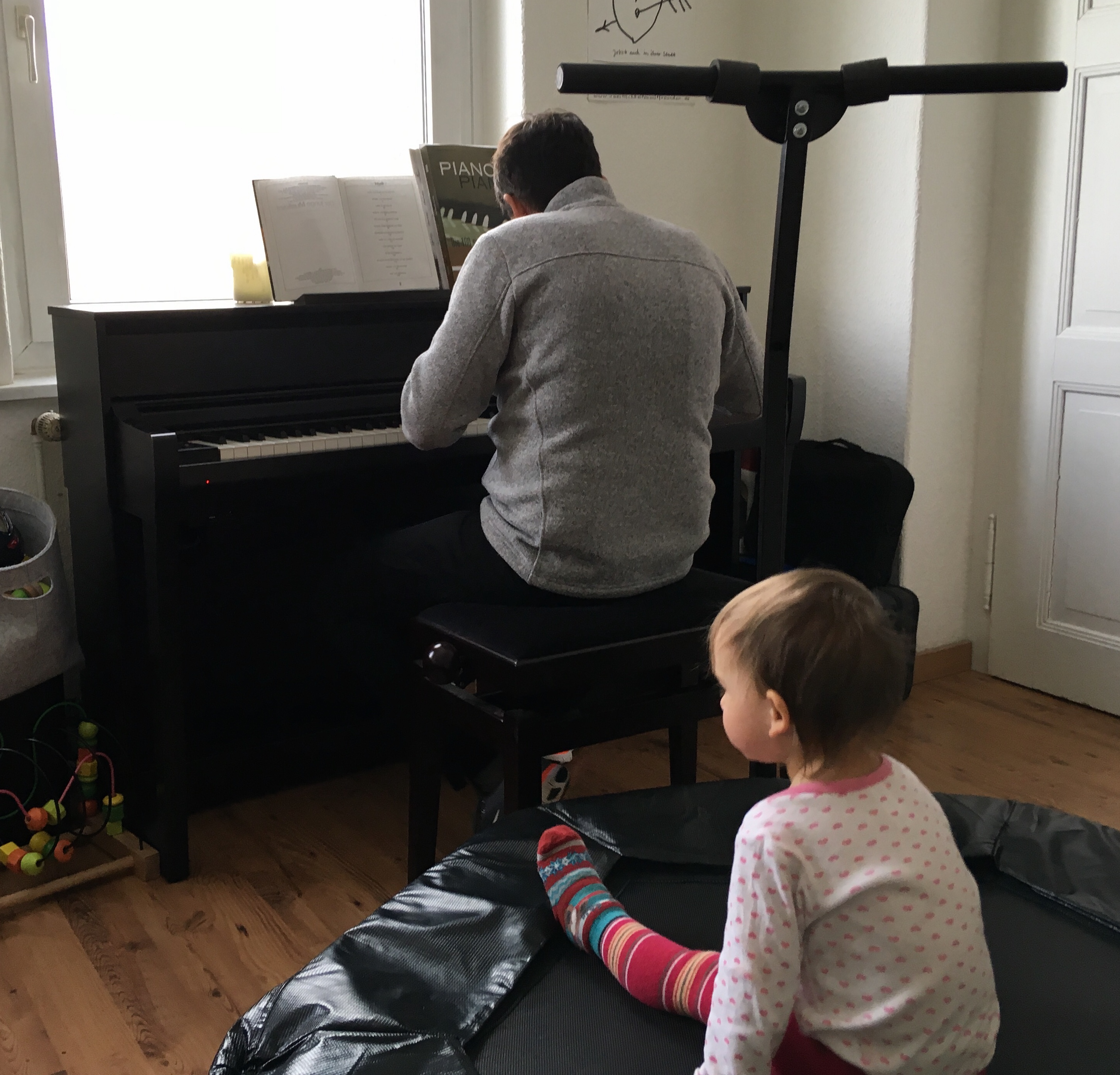 Zu Hause gab es leckeren warmen Kakao gegen die eisige Kälte. L spielte mit ihren Bausteinen und hüpfte lange und wild auf dem Trampolin herum. M sorgte derweil für angenehme Klaviermusik. Als uns Ls Buch unters Bett fiel, nutzte M die Gelegenheit, unter dem Bett Staub zu saugen. Echt gruselig, was sich im Laufe der Zeit dort unten so angesammelt hat.