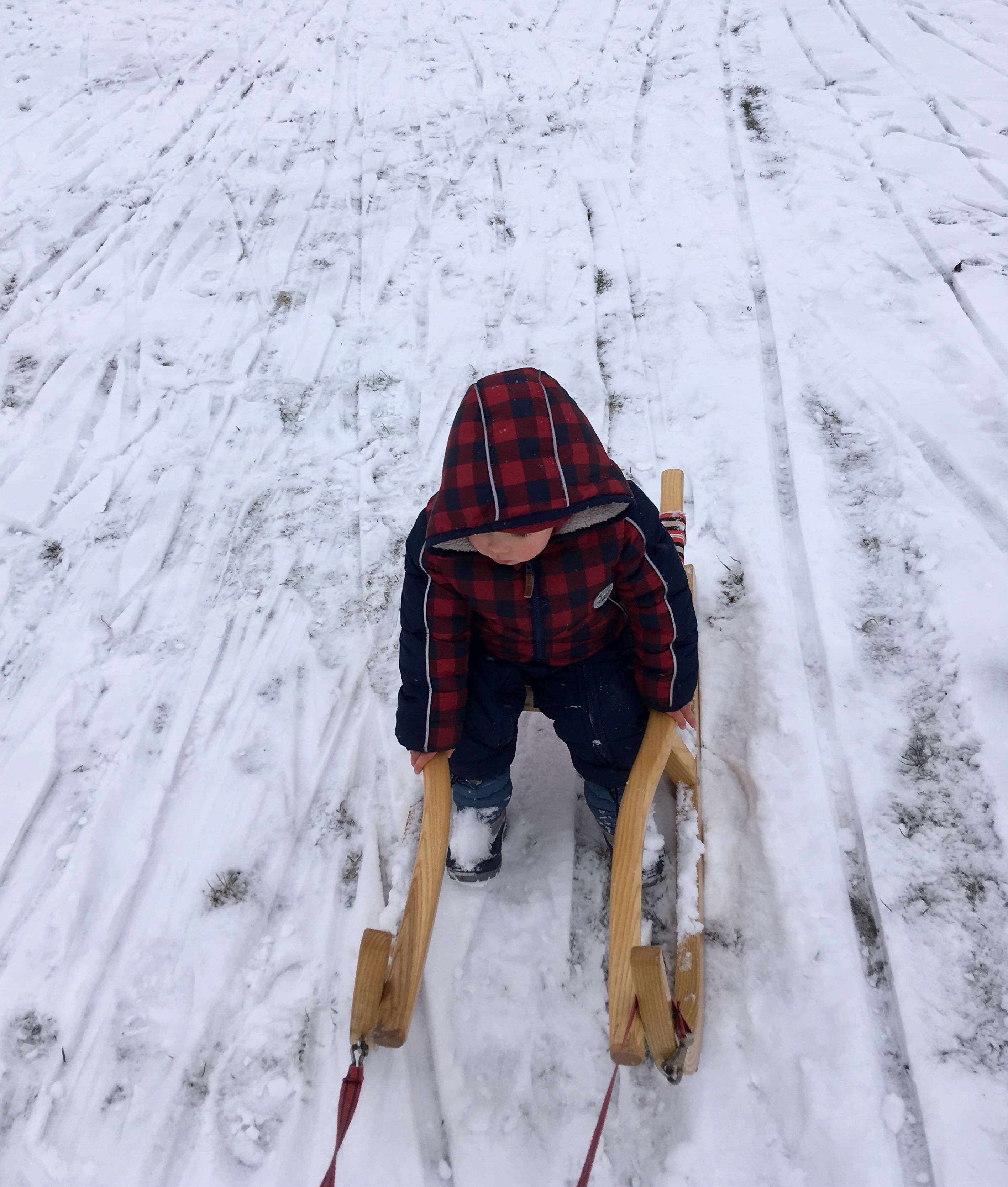 Als wir kurz vor halb elf zurückkehrten, befanden sich M und L oben bei unseren Vermietern C und A, die derzeit Besuch von ihren beiden Töchtern haben. Die jüngere Tochter U bekam letzte Woche Freitag ihr Baby ❤ Prinz und ich gingen ebenfalls in die obere Wohnung. M verabschiedete sich kurz darauf, um sich mit T zum Kart fahren zu treffen. Wenn es heute nicht so unglaublich kalt gewesen wäre, hätte ich M begleitet, ihm mit L zugesehen und wäre später mit Prinz und L im Kinderwagen spazieren gegangen. Stattdessen gingen wir zusammen mit der älteren Tochter S rodeln. L ist allerdings nur einmal mit mir gerodelt. Es hat ihr großen Spaß gemacht. Der kalte Wind stimmte sie dann aber unzufrieden und sie wollte wieder nach Hause.