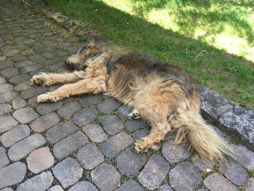 Einhundert Burpees (ohne Liegestütze)! L war so in ihr Spiel vertieft und ich hatte nichts weiter zu tun. Diese fünfunddreißig Minuten waren gut investiert. Ich habe das Gefühl, meinem Nacken hat es sehr gut getan. (Seit heute kann ich den Kopf nämlich nicht nur schlecht nach links, sondern auch nach rechts drehen.) M hat währenddessen draußen im Schatten im Liegestuhl geschlafen. ❤