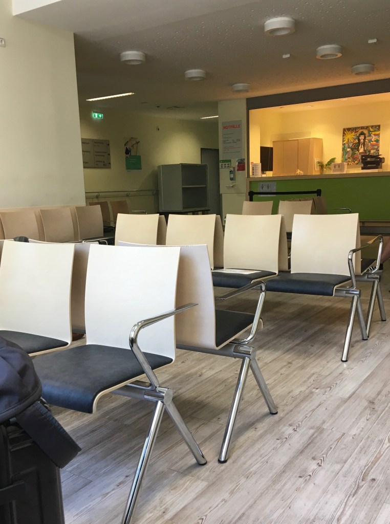 Im Helios kamen wir mittags gegen zwölf Uhr an. Die Stimmung der Schwester bei der Patientenaufnahme war leicht aggressiv. Verständlich: Sie war ganz alleine für zwei Bereiche zuständig. Nach einer Dreiviertelstunde des Wartens bekamen wir die Info, dass wir in die erste Etage zum Kassenärztlichen Notfalldienst gehen sollen. Och nö! Zum Glück gab es dort keine Warteschlange. Wir konnten unser Anliegen schildern und waren keine fünf Minuten später beim Arzt, der uns eine Überweisung mitgab, mit der wir wieder ins Erdgeschoss in die Notaufnahme gingen. Dort dauerte es diesmal nur eine Viertelstunde, bis ich an der Reihe war und M final anmelden konnte. Am Nachmittag wurde ein kleines CT von Ms Halsbereich gemacht. Gegen 18:00 Uhr ließ ein Arzt den Eiter aus dem Flüssigkeitsverhall (es handelt sich vielleicht um einen Abszess, aber zum Glück um keine Thrombose) ab und legte eine Lasche, um den Bereich in den nächsten Tagen besser spülen zu können. Es wurden auch grüne Knoten entdeckt. Vermutlich handelt es sich hierbei um Nahtmaterial von den zahlreichen Operationen zwischen Dezember und Februar, welches sich nicht zersetzt hat. Die Ärzte der Mund-, Kiefer- und Gesichtschirurgie und der Gastroenterologie arbeiten von nun an zusammen und nehmen auch Kontakt zur onkologischen Praxis auf.