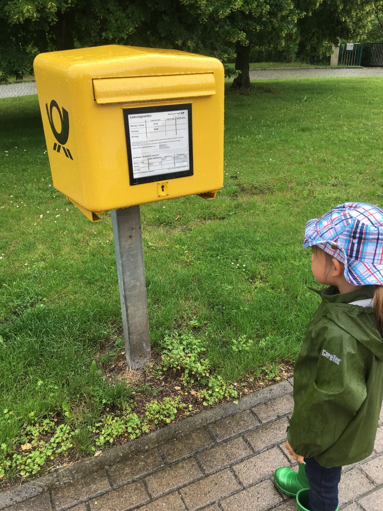 Mittags waren wir endlich soweit, für einen kurzen Spaziergang zum Briefkasten das Haus zu verlassen. Ich brachte gerade Ls Zahnbürste zurück ins Bad, schaute aus dem Fenster und sah … Regen! Natürlich. Auch wenn es ziemlich stark regnete, war es mir egal. Wir zogen Regensachen an und machten uns gemeinsam mit Prinzi auf den kurzen Weg. Im Park entdeckten wir an einer versteckten Stelle ein paar reife Erdbeeren. Die waren sehr lecker. 🙂