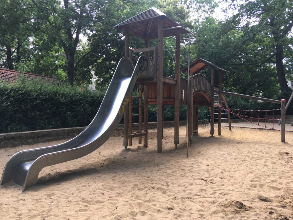 Da der angekündigte Regen und das Gewitter auf sich warten ließen, machten sich L und ich am Nachmittag auf den Weg zum Spielplatz. Leider stand der Eiswagen der Bäckerei Rüger nicht am Parkeingang. (Ich hatte heute extra ein wenig Geld eingesteckt.) Wir besuchten den Spielplatz in der Elisabethstraße. Spontan schaute auch mein Bruder vorbei, der bis morgen wegen einer Geburtstagsfeier in Erfurt ist. Er konnte L bei der „Feuerwehrstange“ behilflich sein. Beim ersten Donnergrollen mussten wir uns aber gleich auf den Heimweg machen, da L Angst hatte. Wir waren kaum zu Hause, als es zu regnen begann. Glück gehabt!