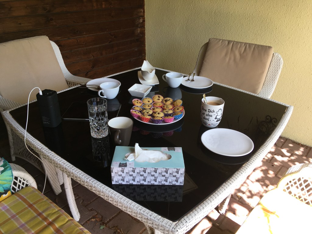 Am frühen Nachmittag kamen unsere Kollegen/Freunde M und S zu uns nach Hause. Den urlaubsbedingt ortsabwesenden M schalteten wir per Videocall hinzu. Bei Muffins, Kaffee und Bier sprachen wir über das vergangene Geschäftsjahr und diskutieren über die gestern in der Versammlung vorgeschlagenen Varianten und somit über die Zukunft der Firma. Dieses Treffen bzw. Gespräch war trotz des nervenaufreibenden Themas zur Abwechslung entspannt und frei von jeglichem Druck.