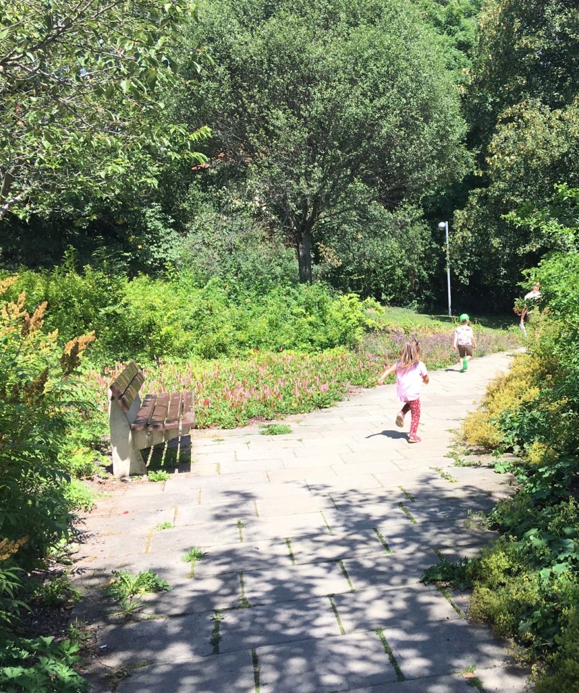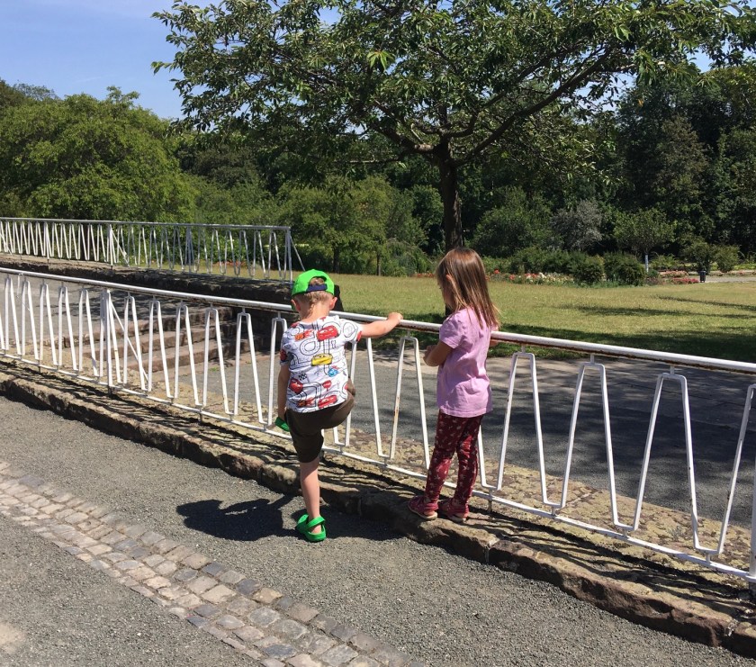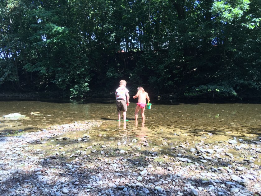 Kurz nach dem Aufstehen kamen Ls Kindergartenfreund Y und seine Mama zu uns. Anfangs waren beide Kinder ein wenig schüchtern, doch das legte sich schnell. L führte Y zunächst in ihr Kinderzimmer, veranstaltete später mit ihm ein Wettrennen und zeigte ihm die Kniebombe im Planschbecken. Nach dem gemeinsamen Mittagessen (Nudeln mit viel zu scharfer Tomatensoße) machten wir uns auf den Weg zum Fluss. Dort sammelten und warfen beide Steine, während Ys Mama und ich uns weiter unterhielten und Prinzi seinen Mittagsschlaf fortsetzte. Fünfeinhalb Stunden später machten sich die beiden wieder auf den Heimweg. Das war ein schöner Tag. ❤