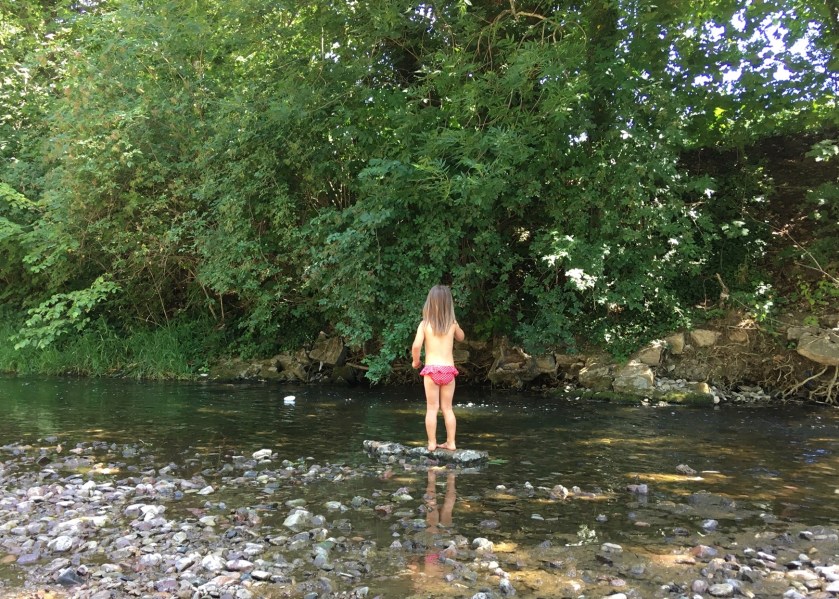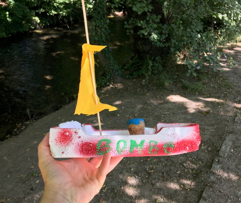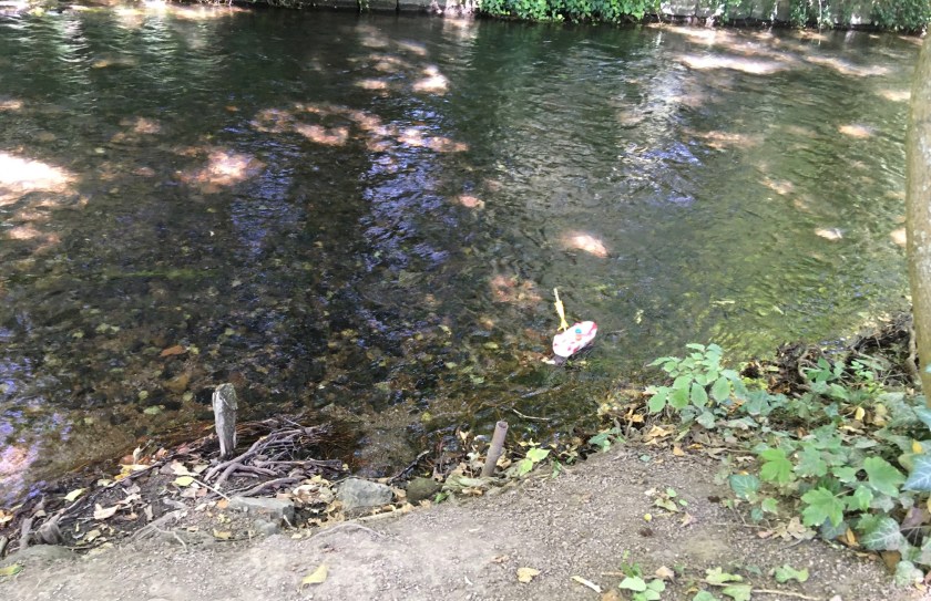 Nach dem Frühstück machte ich mich mit L und Prinzi auf den Weg in den Park. Dort trafen wir Ms Mama. Gemeinsam mit L ließ sie zwei selbstgebastelte Boote in den Flutgraben. (Die Idee ist toll, dennoch wünschte ich, dass das Boot nicht aus Müll bestanden hätte. Ich mag es nicht, wenn unsere Flüsse verschmutzt werden.) Wenig später gingen wir wieder runter an den Fluss. L warf Steine ins Wasser und Ms Mama und ich machten es uns auf der Picknickdecke gemütlich. Prinz war auch heute wieder lieb, aber nicht so entspannt wie gestern.