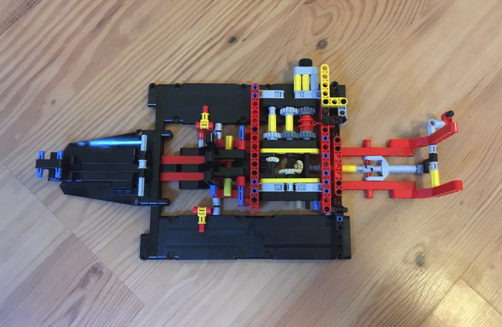 Um mich „abzureagieren“ bzw. die positive Neuigkeit zu verarbeiten, baute ich abends ein bisschen am Lego Technic-Fahrzeug weiter. Schnaps habe ich aktuell nicht im Haus. Also musste Lego her. 😉
