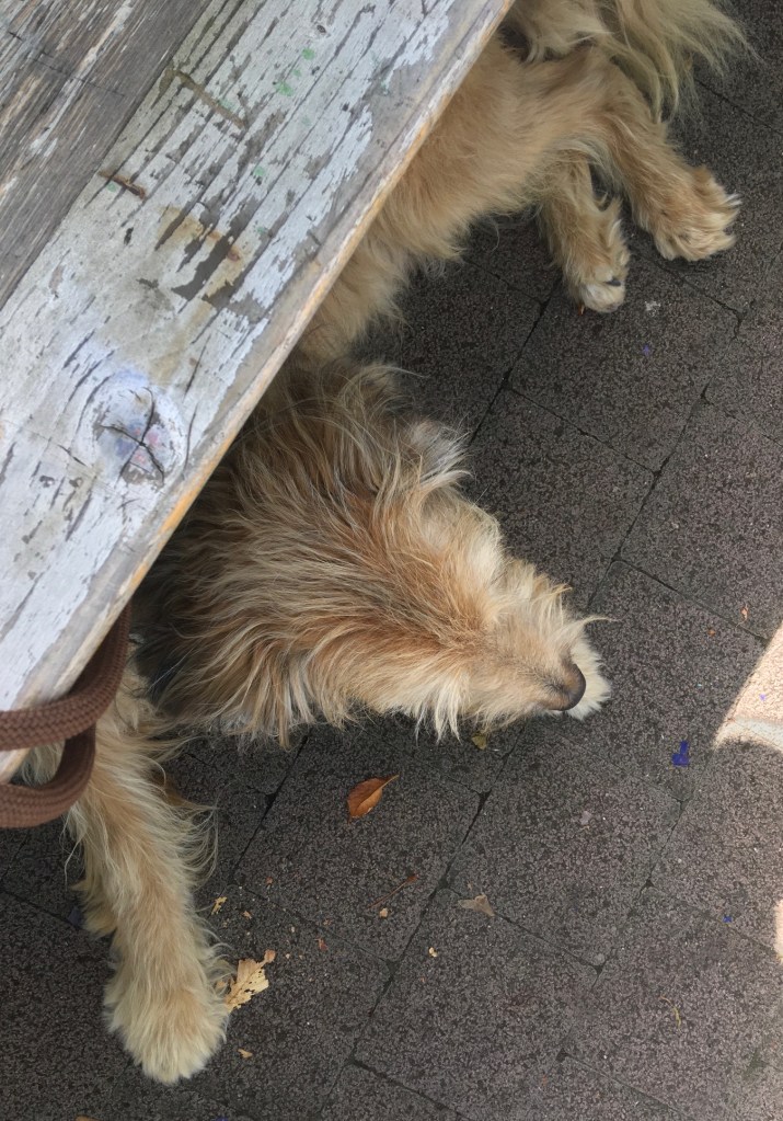 Kurz vor siebzehn Uhr trafen wir uns mit Ms Papa auf dem Spielplatz beim Espachcafé. L verstand sich ausnahmslos gut mit ihrem Opa. Nach einer Stunde mussten wir leider die Zelte schon wieder abrechen, da L mit ihrer langen Hose in den Wasserbereich sprang und diese binnen kürzester Zeit pitschnass war. Sooo warm war es heute leider nicht, um die Hose in der Sonne trocken lassen zu können.