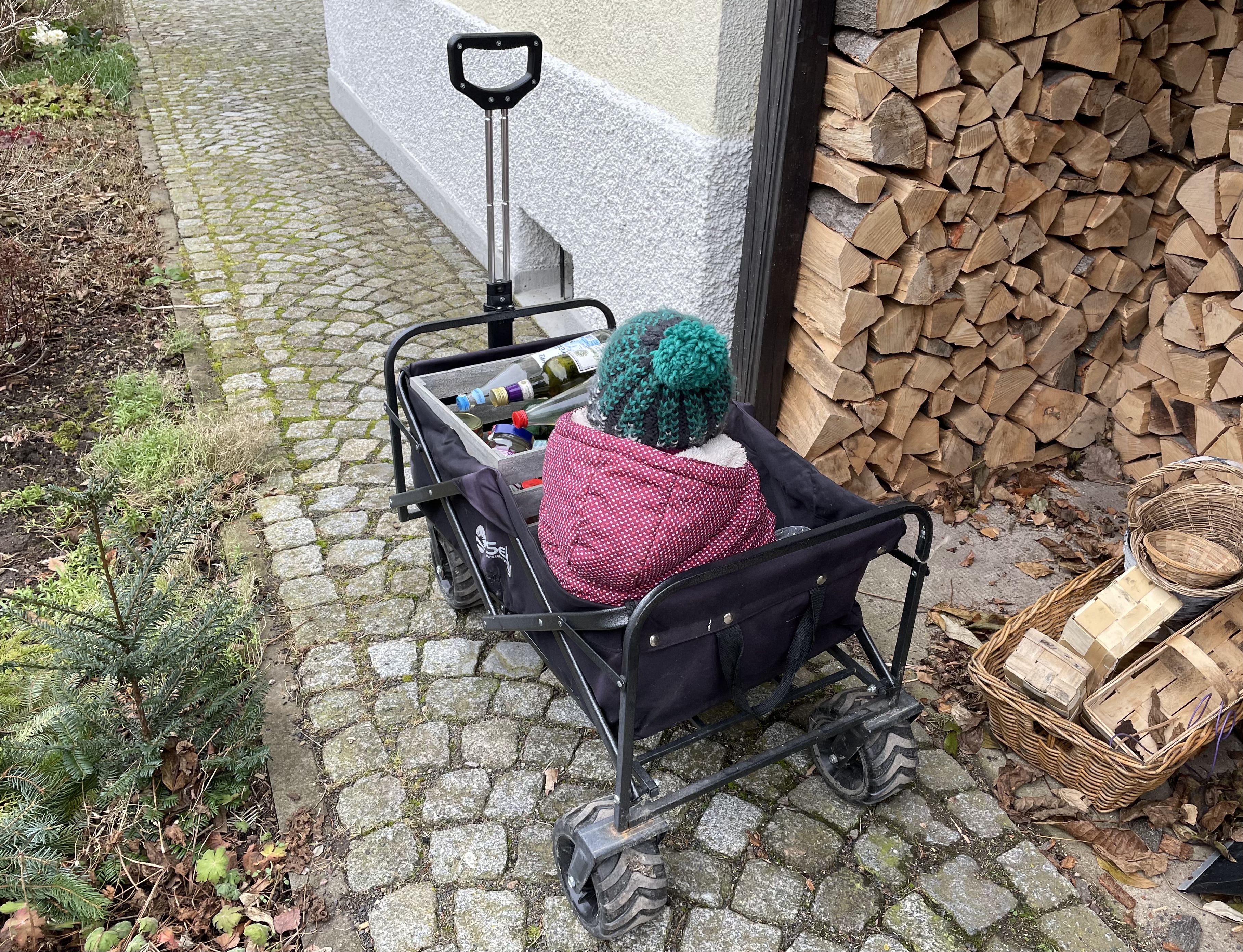 Am frühen Nachmittag brachten L und ich mit dem Bollerwagen unsere Glasflaschen zu den Glascontainern. Mir tat der halbstündige Spaziergang bei den milden Temperaturen richtig gut.