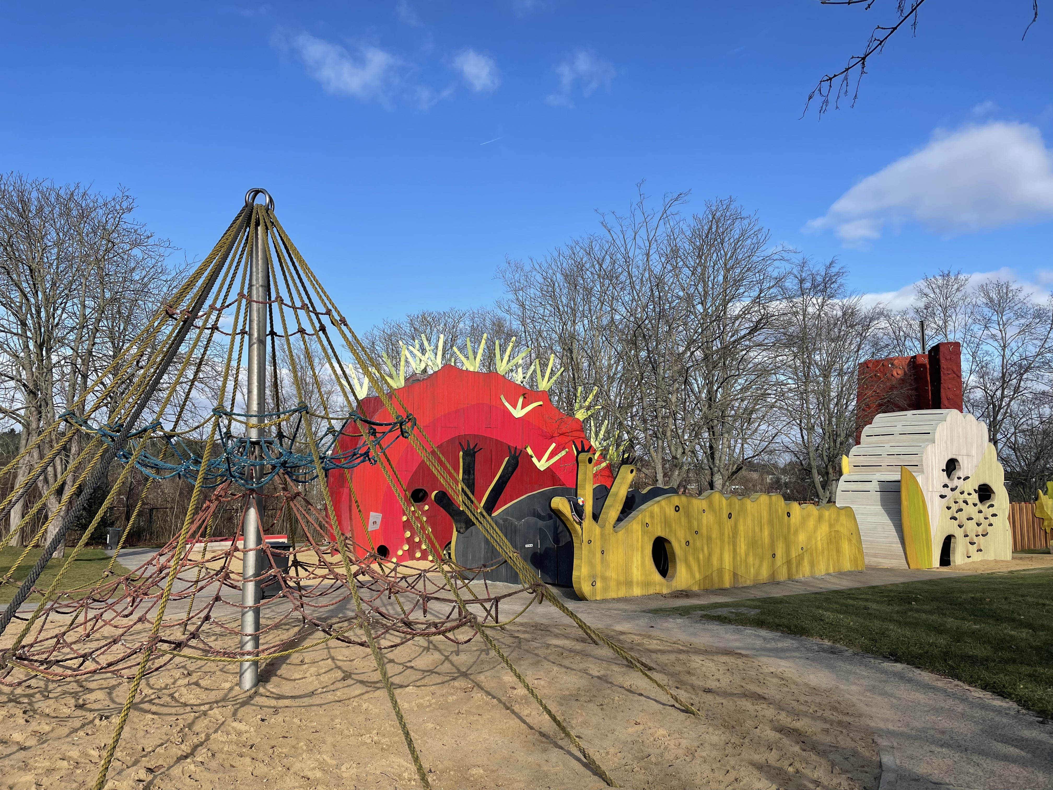 Um kurz nach elf trudelte Ls Kindergartenfreund K mit seiner Mama ein. Und nur wenige Sekunden später kam Ls ehemaliger Kindergartenfreund Y mit seinen Eltern. Y zog im Herbst 2020 von Erfurt in den Landkreis Sömmerda. K, L und Y waren zwei Jahre lang die besten Freunde. Aus diesem Grund treffen wir uns alle in unregelmäßigen Abständen und lassen die Kinder auch außerhalb des Kindergartens miteinander spielen. Alle Kinder freuten sich riesig und waren sehr aufgeregt. Wir betraten das EGA-Gelände und steuerten den Spielplatz an.