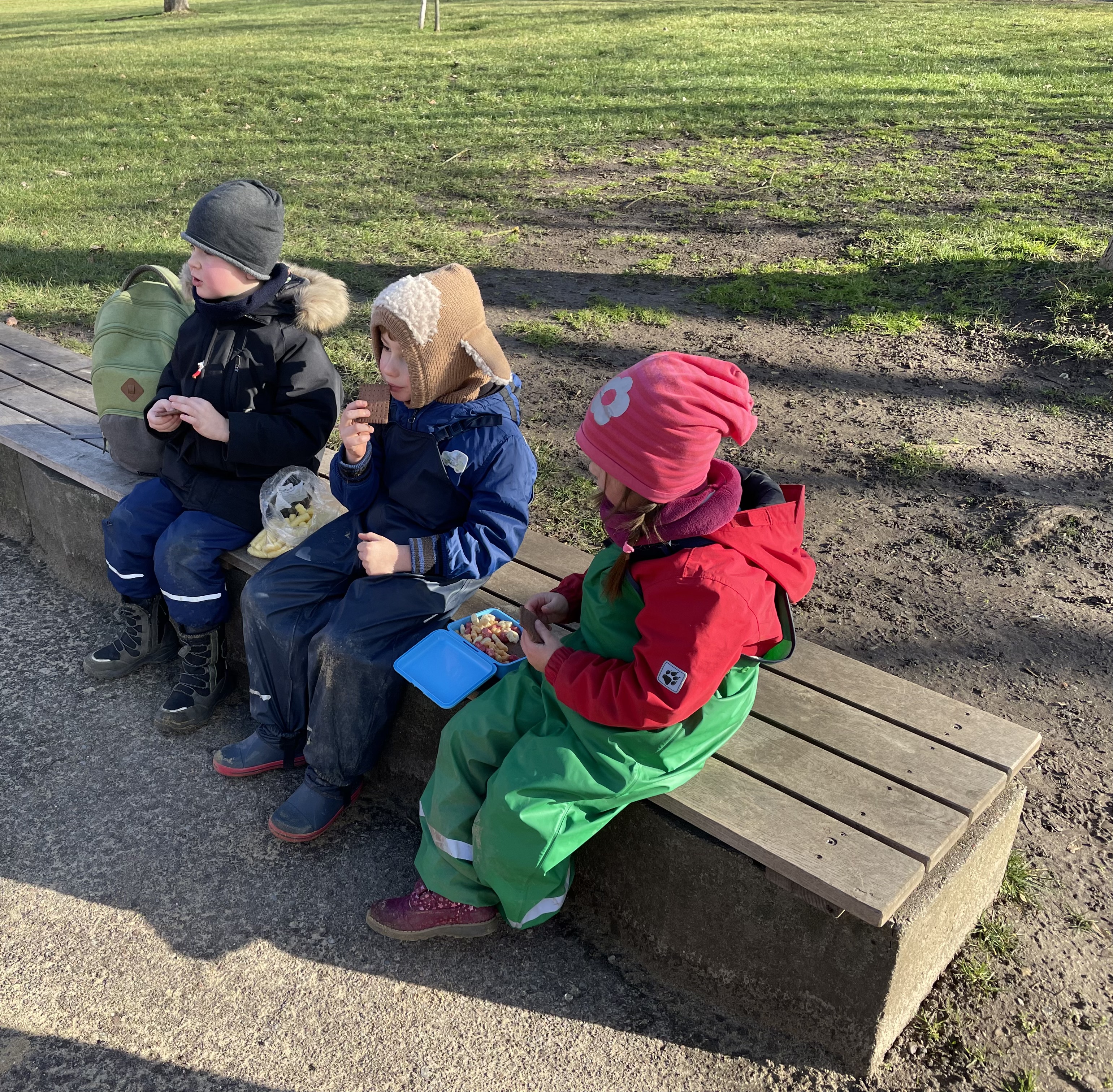 Während die Kinder miteinander spielten, herumrannten und irgendwo auf dem Spielplatz ihr „Kinder-Picknick“ veranstalteten, tauschten wir Eltern uns über die aktuellen Ereignisse in unseren jeweiligen Leben aus. Das war sehr schön. Dank der strahlenden Sonne am Himmel war es eine zeitlang auch angenehm warm. Über drei Stunden später waren wir Eltern dann doch durchgefroren und begaben uns allmählich auf den Nachhauseweg. Da L Ende März Geburtstag hat, wird das nächste Wiedersehen mit Y nicht wieder fast ein halbes Jahr auf sich warten lassen.