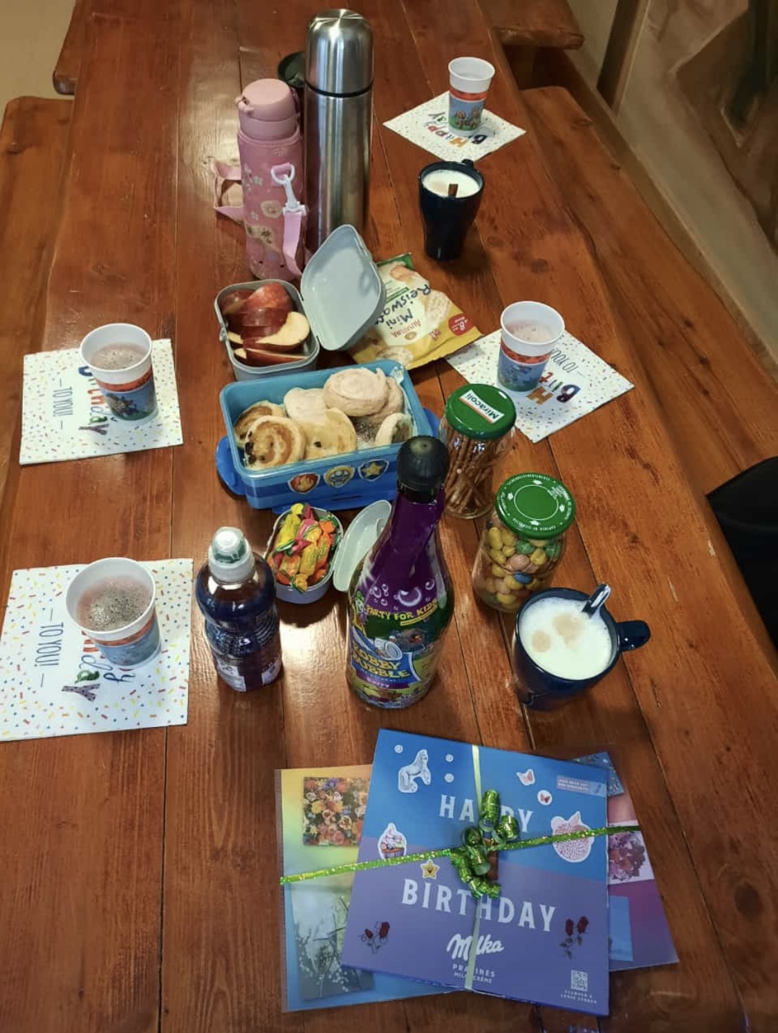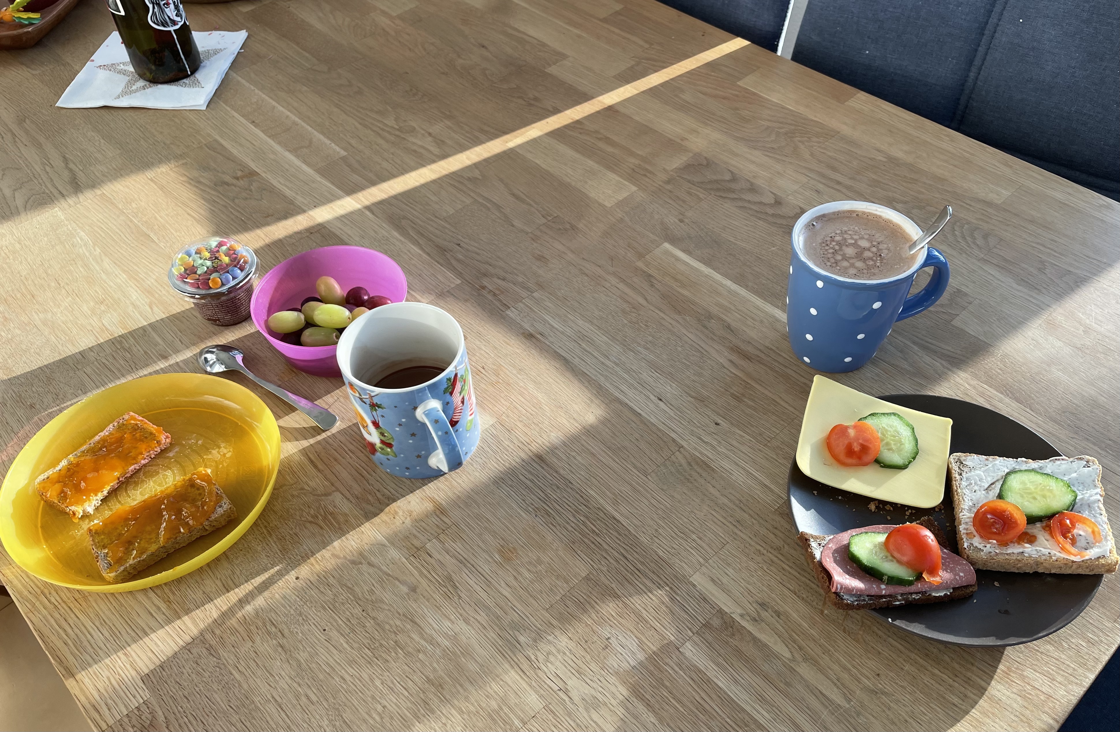 Unsere Nacht wurde kurz nach halb acht von L für beendet erklärt. Wir waren überrascht, wie hell es bereits war, und freuten uns sehr über den Sonnenschein. Kuschelnd lauschten wir einem Miraculous-Hörspiel.