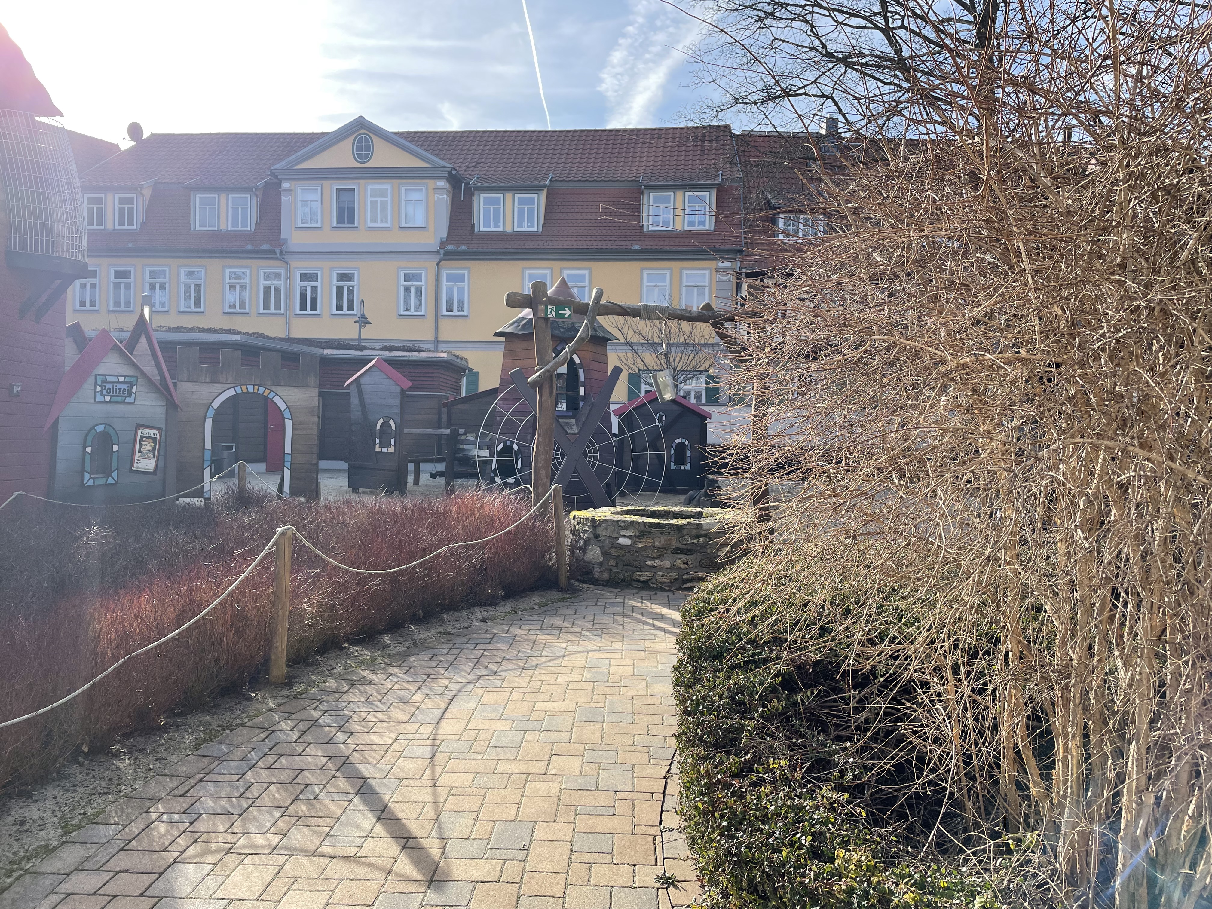 Wir fuhren eine halbe Stunde mit dem Auto nach Bad Langensalza. Dort steuerten wir auf die Rumpelburg, dem einzigen derzeit geöffneten Indoor-Spielplatz Thüringens, zu. Wir ließen L und M sechs Stunden im Innen- und Außenbereich toben, futterten mittags gemeinsam Pizza und genossen, dass unsere Kinder beschäftigt waren und wir nichts weiter tun brauchten.