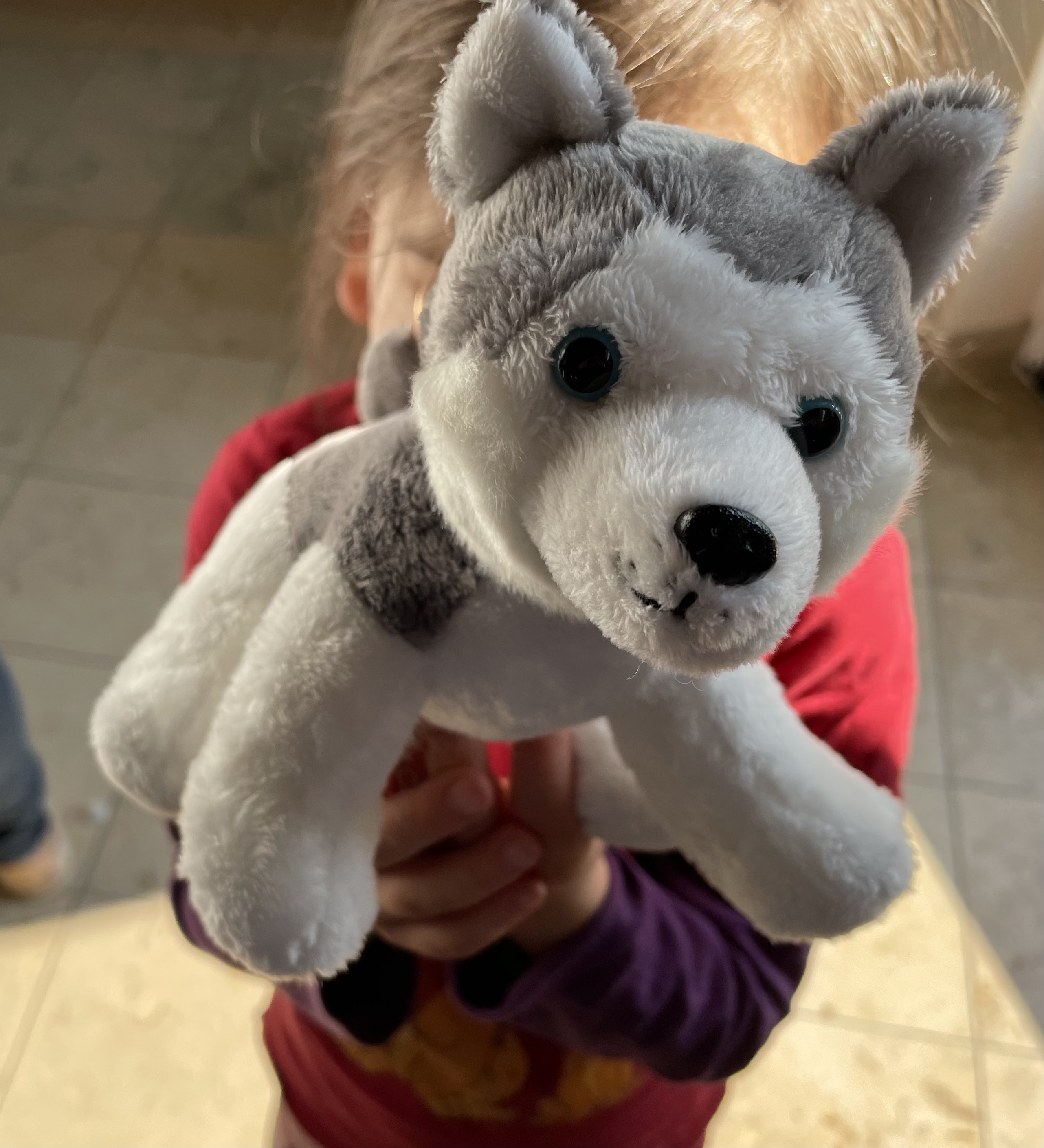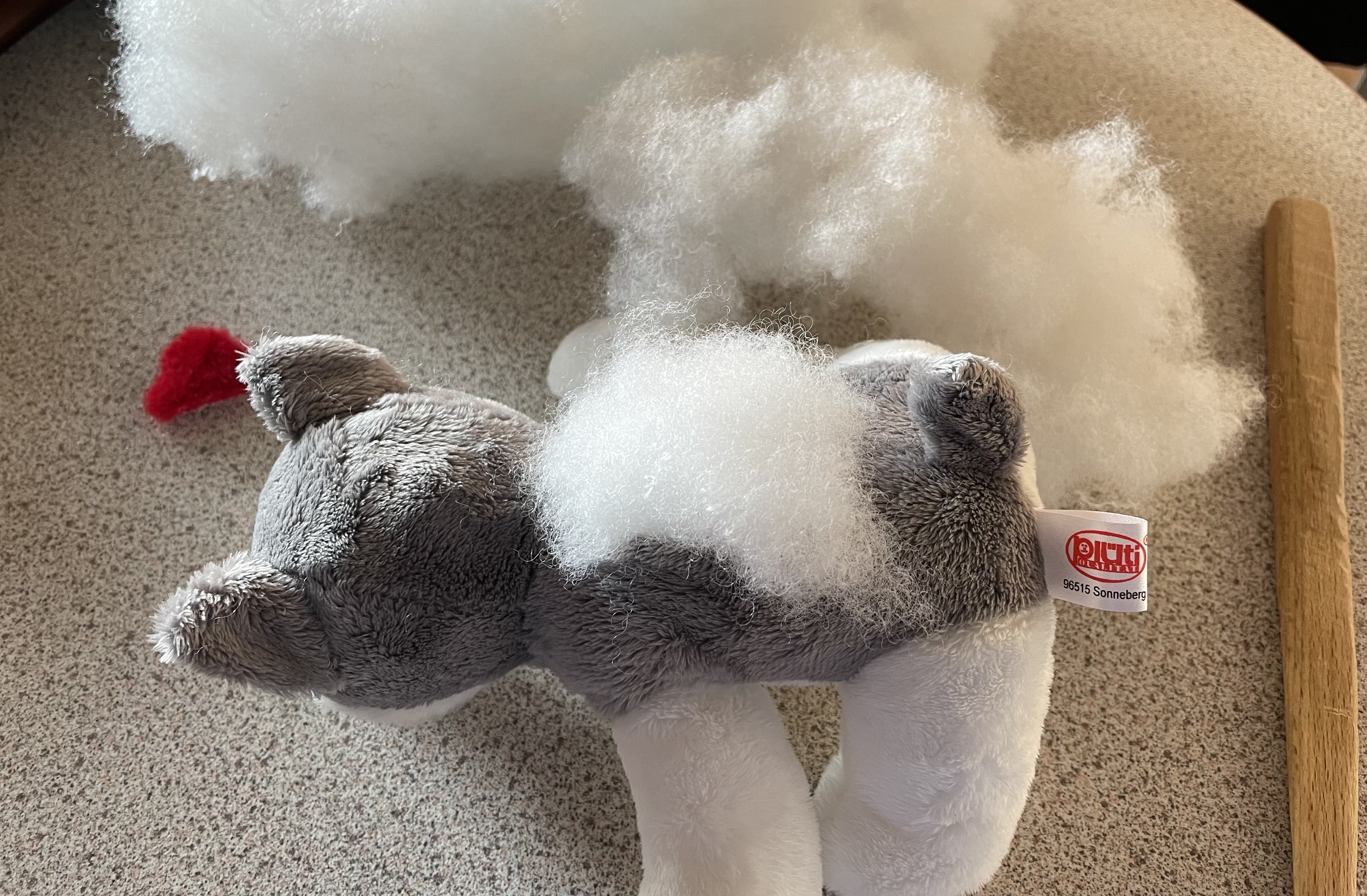Bereits eine Stunde später suchten wir uns einen Platz im Aufenthaltsraum, um gemeinsam mit vielen anderen Familien ein Kuscheltier selbst mit Watte zu befüllen, anschließend ein Herz aus Filz in den Körper zu legen und es zuzunähen. Jedes Kuscheltier wurde vermessen, gewogen und bekam eine Geburtsurkunde im Rahmen einer kleinen Zeremonie. Das war ein sehr schönes Erlebnis für alle anwesenden Kinder, auch wenn wir lange in der Schlange standen, ehe Vesti offiziell geboren wurde.