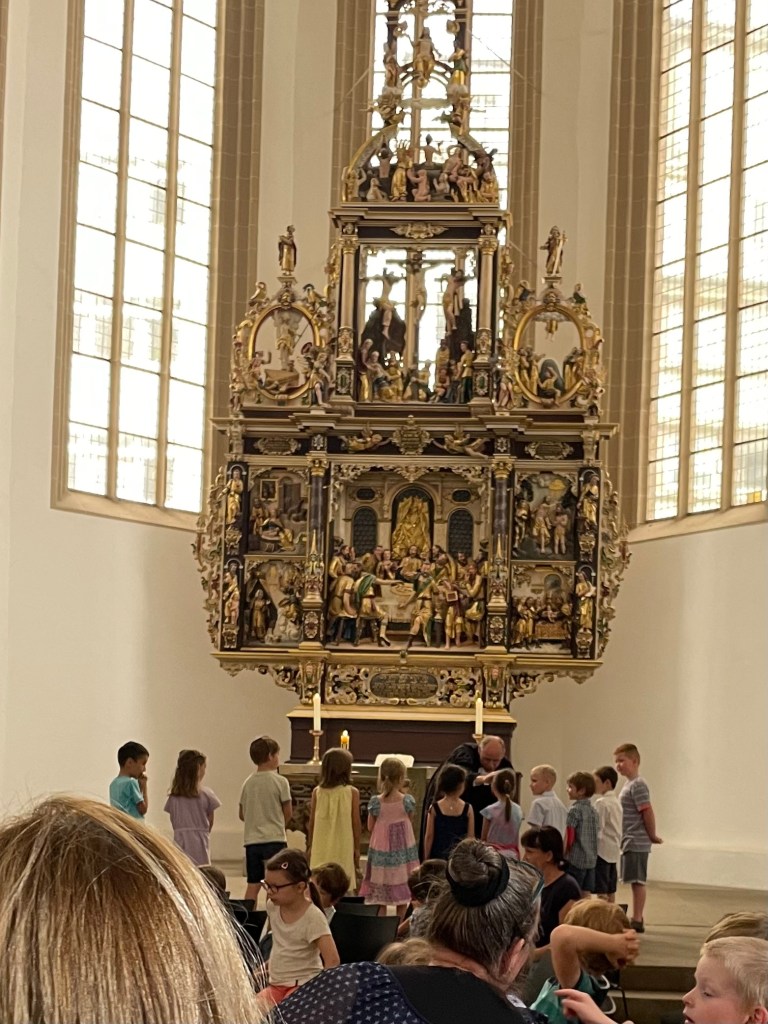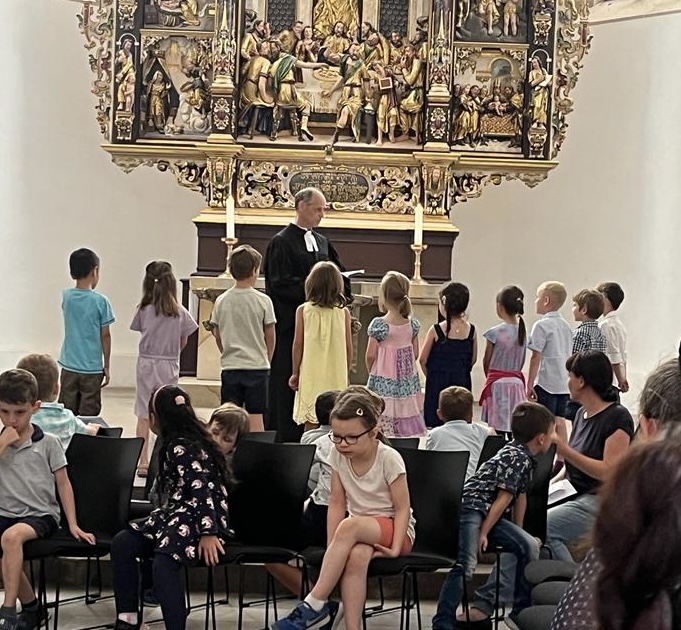 Dafür aber heute. Denn am heutigen Nachmittag versammelten sich alle Vorschulkinder und ihre Familien in der Kaufmannskirche am Anger in Erfurt. Der Gottesdienst in der evangelischen Kirche ist das jährliche Kindergartenabschlussfest.