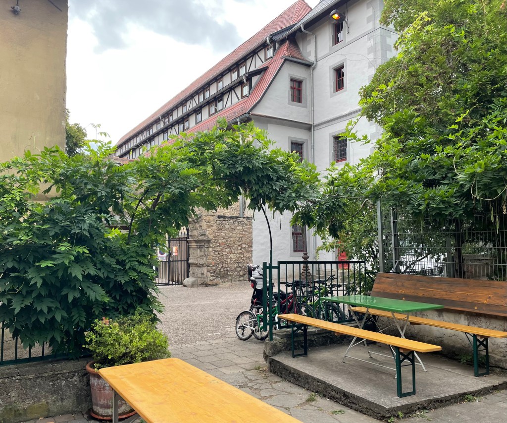 Nach der Veranstaltung gingen einige, darunter L und ich, Ls Omas und einer ihrer Opas in den Biergarten des Museumskellers Erfurt, um den Abend ausklingen zu lassen.