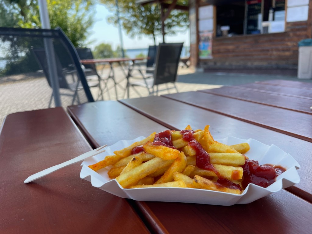 Gegen 20 Uhr begann es zu stürmen. L kam zurück zu mir, futterte auch noch was und verkrümelte sich mit mir anschließend ins Bett. Wir hörten noch ein Hörspiel, während es draußen regnete und gewitterte. Müde und geschafft vom Badetag schliefen wir zeitnah ein.