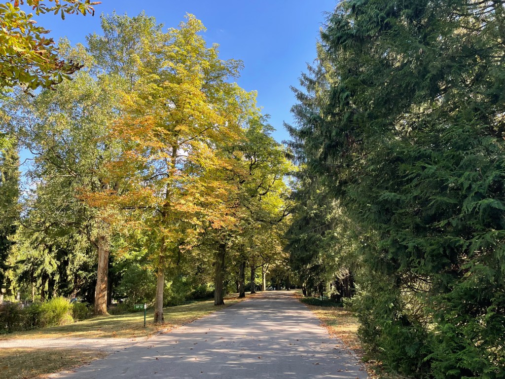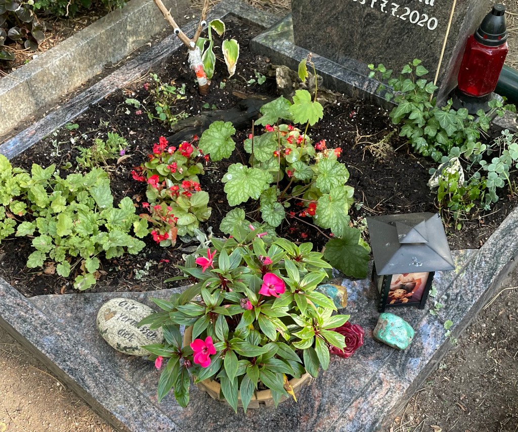 Diese Woche habe ich Friedhofsdienst. Ich fuhr somit zum Erfurter Hauptfriedhof, stattete Ms Grab einen Besuch ab, säuberte die Umrandung und den Grabstein, entfernte die Nadeln und goss die Pflanzen. Auf dem Rückweg sah ich ein braunes Eichhörnchen. Der Anblick der vertrockneten Blätter am Boden stimmt mich sehr traurig.