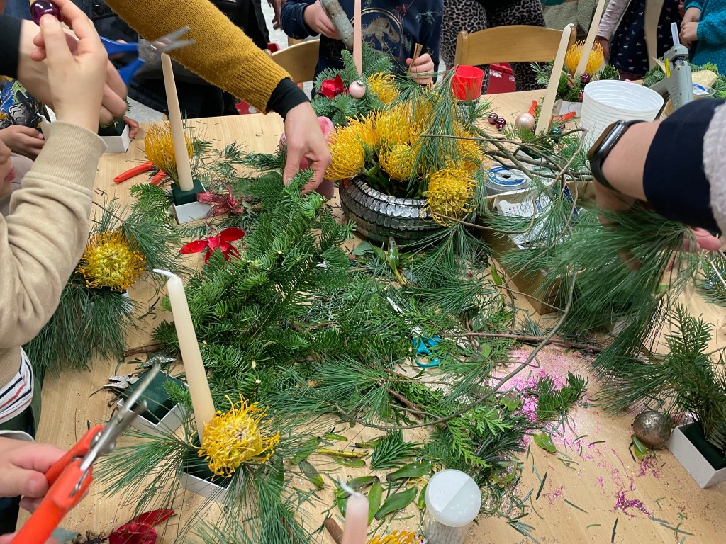 Unser Wochenende begann mit dem Besuch des Weihnachtsmarktes in Ls Schule. Gemeinsam mit ihrer Klassenkameradin L und deren Mama zogen L und ich am Nachmittag durch das Schulhaus.