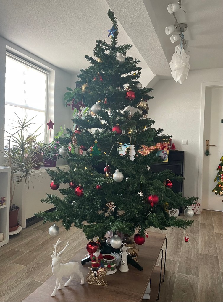 Gemeinsam mit L dekorierte ich nach dem Frühstück die Wohnung fertig und schmückte den Weihnachtsbaum. Ich mag es, wenn der Baum viele Wochen vor Heiligabend geschmückt in der Wohnung steht und wir uns daran erfreuen können. In diesem Jahr kaufte ich für uns einen künstlichen Baum, der uns nun die nächsten Jahre durch die Advents- und Weihnachtszeit begleiten soll. Er sieht wie ein echter Baum aus und fühlt sich auch so an. Ich bin sehr zufrieden.