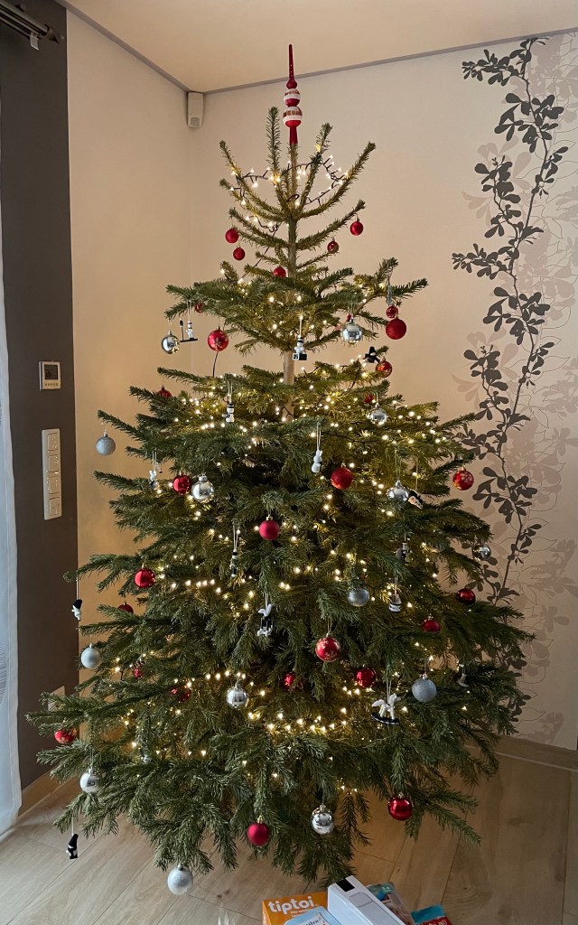 Nach dem Vesper und Abendessen schauten wir gemeinsam etwas fern. Das Märchen “Der kleine Lord” holte L nicht so ab, weshalb wir uns ins Bett verkrümelten. Ich las L noch die Geschichte “Der Tannenbaum” von Hans Christian Anderson vor. Das Buch, in dem die Geschichte enthalten ist, kauften L und ich uns am 4. Advent auf dem kleinen Weihnachtsmarkt in Markkleeberg bei Brot & Kees.
