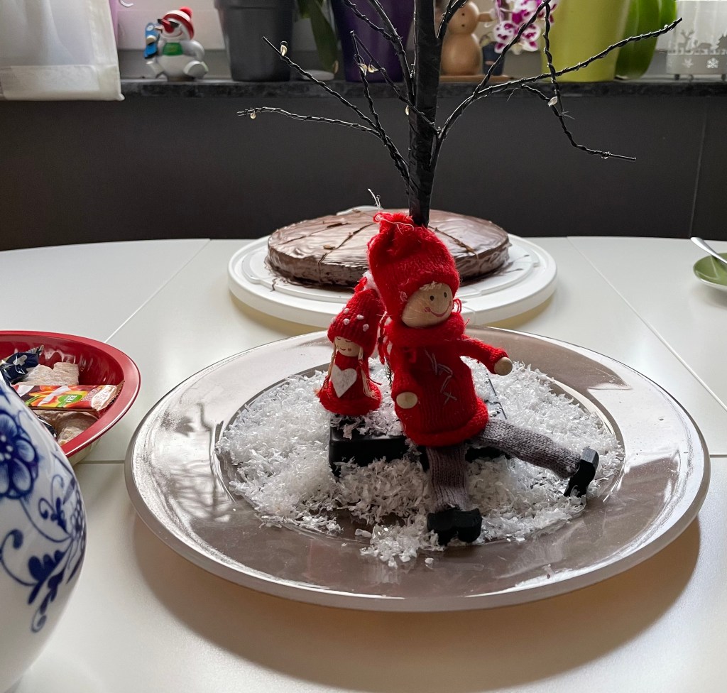 Aufgewacht sind wir zum Glück erst halb neun. Nach dem Frühstück versendete ich Weihnachtsnachrichten und las mein Buch zu Ende, während L mit ihren Geschenken spielte.