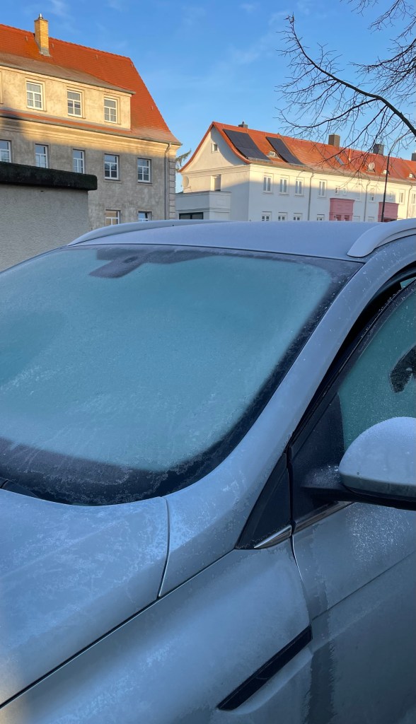 Um den Weg zur Schule antreten zu können, musste ich heute Morgen erst mal sämtliche Scheiben des Autos frei kratzen. Obwohl die Sonne schien, waren es nur minus drei Grad Celsius.