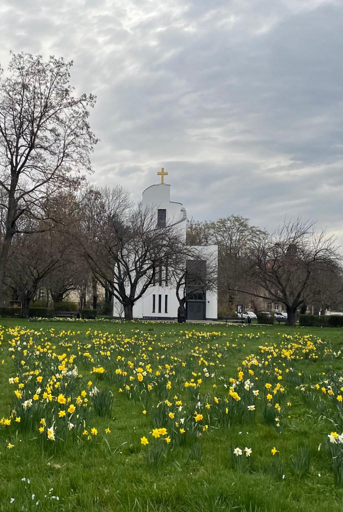 Als L in der Schule war, fuhr ich mit dem Auto in die Nähe einer Sparkassenfiliale, um Bargeld abzuheben. Den Weg vom geparkten Auto bis zur Filiale und zurück nutzte ich für meinen morgendlichen Spaziergang. Dabei entdeckte ich eine wunderschöne Kirche, die mir bis vorhin völlig unbekannt war. Egal wohin ich in Markkleeberg mit dem Auto fahre, ich finde immer einen kostenlosen Parkplatz. Das mag ich wirklich sehr und macht mir die Kleinstadt noch liebeswerter.