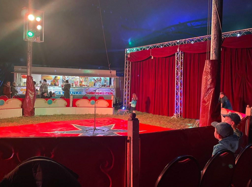 Zu Hause stellte ich das Essen nur in der Küche ab. L und ich fuhren gleich weiter zum Festanger in Markkleeberg. Bis einschließlich Sonntagmorgen gastiert dort der Circus Karl Buch. Mit L war ich noch nie im Zirkus. Sie hatte bisher einfach so gar keine Lust darauf. Ich war das letzte Mal Ende der 90er Jahre in einer Zirkusshow, würde ich schätzen.