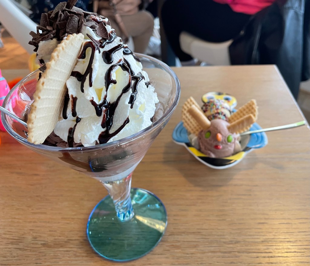 Nach der Schule gingen L und ich in die Eisdiele in der TriGaleria in Markkleeberg. Wir essen zwar häufig Eis, aber einen Eisbecher hatten wir schon länger nicht mehr gefuttert. Das machten wir heute. Lecker war’s.
