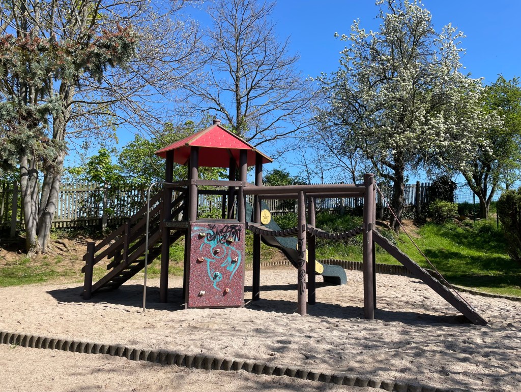 L wollte spazieren gehen. Freiwillig. Diese Chance konnte ich mir einfach nicht entgehen lassen. Anfang der Woche entdeckte ich einen uns noch unbekannten Spielplatz in Markkleeberg in sehr ruhiger Lage. Wir machten uns am späten Vormittag auf den Weg dorthin. L spielte eine Weile mit ihrer Puppe, während ich die Wärme der Sonne genoss.