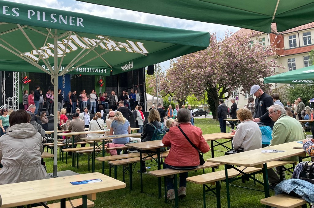 Vom Stadtfest in Markkleeberg bin ich sehr begeistert. Es ist seit gestern Nachmittag richtig viel los. An die Kinder wurde auch gedacht. Und zwar so richtig. Auf den insgesamt drei Bühnen war während Ls und meiner sechsstündigen Anwesenheit auf dem Fest immer Programm. An Live-Musik mangelte es ebenfalls nicht. Das kenne ich von Erfurt leider so gar nicht. Meine Geburtsstadt kann sich eine große Scheibe von Markkleeberg abschneiden.