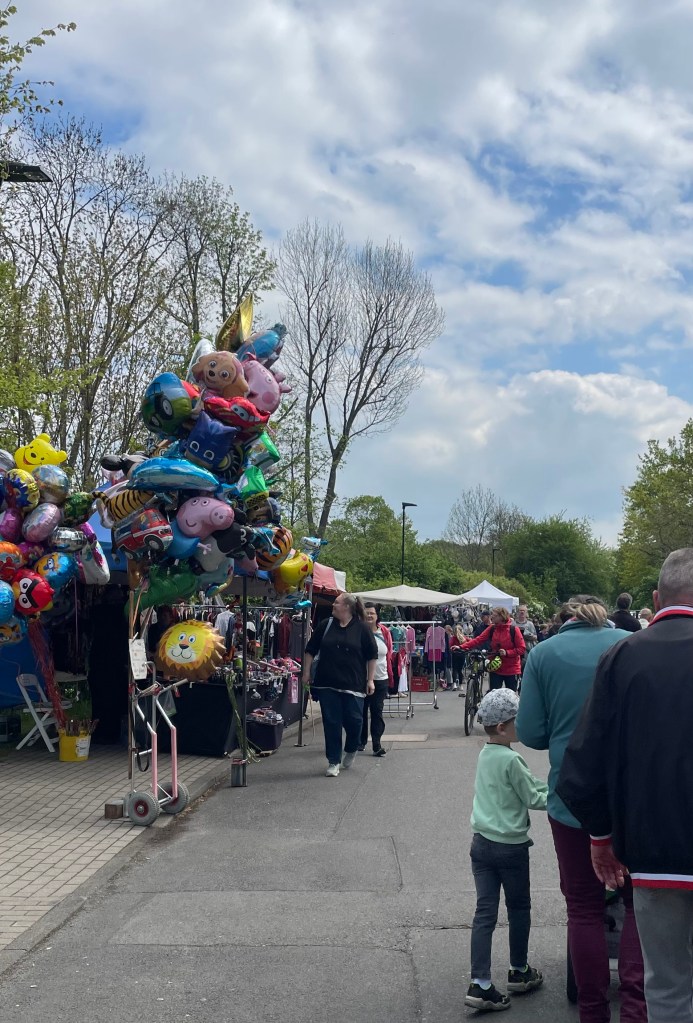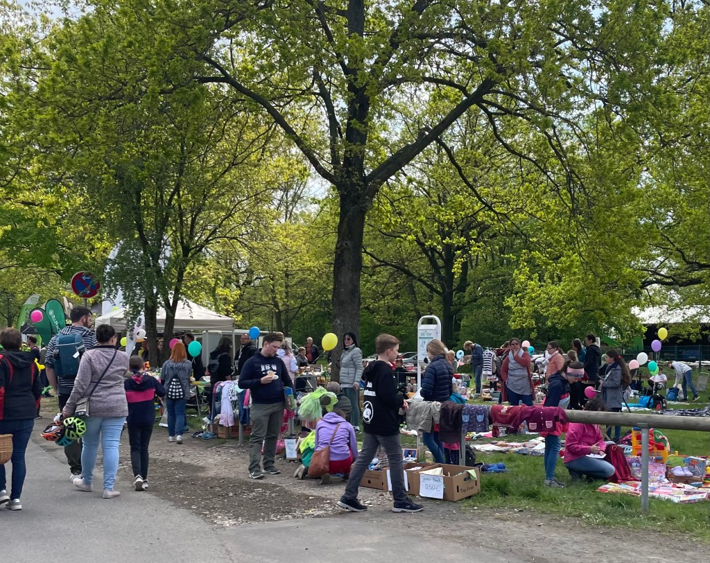 Beim Kinderflohmarkt – von Kinder für Kinder – schauten wir mehrfach vorbei. L kaufte sich unter anderem Puppenkleidung und ein Buch von ihrem Taschengeld. Ich kaufte für L ein T-Shirt und ein Sweatshirt.