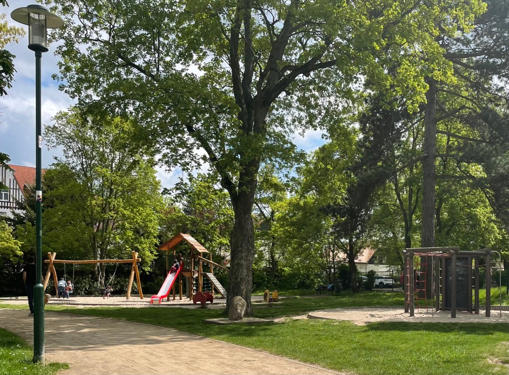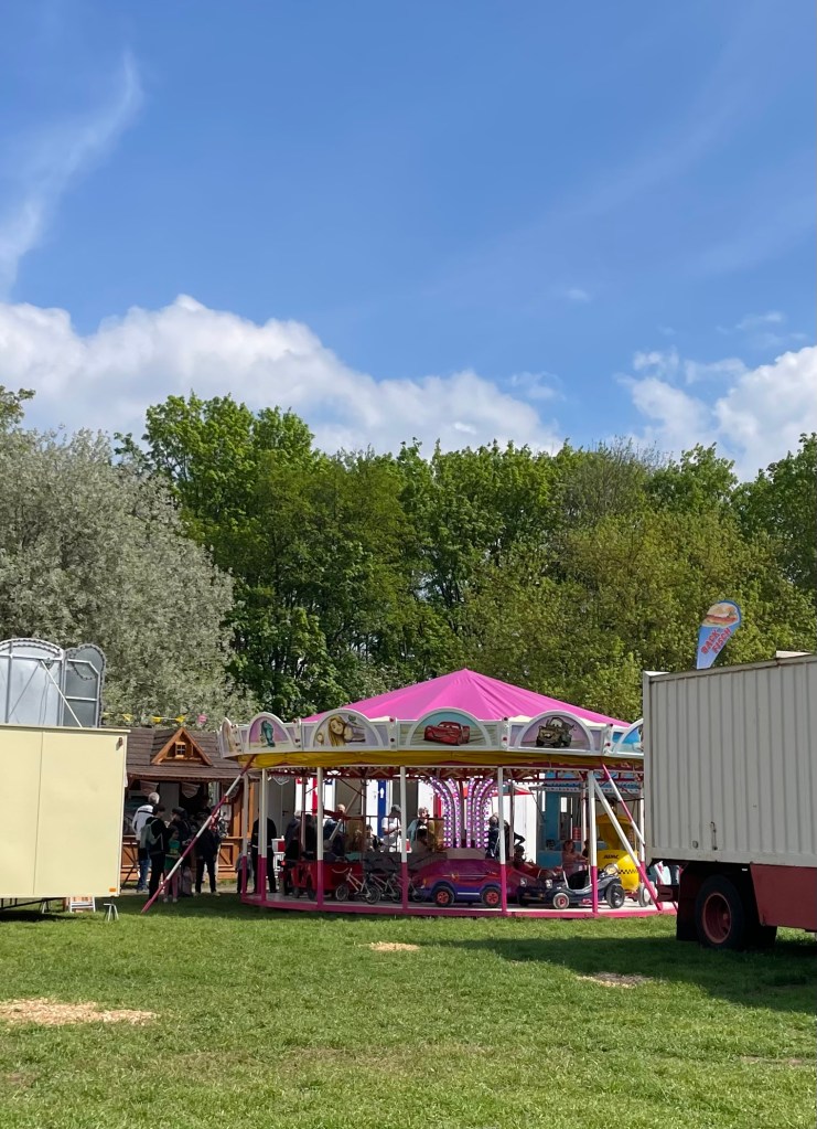 Bevor wir noch mal auf dem Rummel vorbeischauten, machten wir ein paar Minuten auf dem zum Stadtfest nahegelegenen Spielplatz Pause. Nach dem Karussell fahren bekam L eine Zuckerwatte und ich einen Schokoladenapfel.
