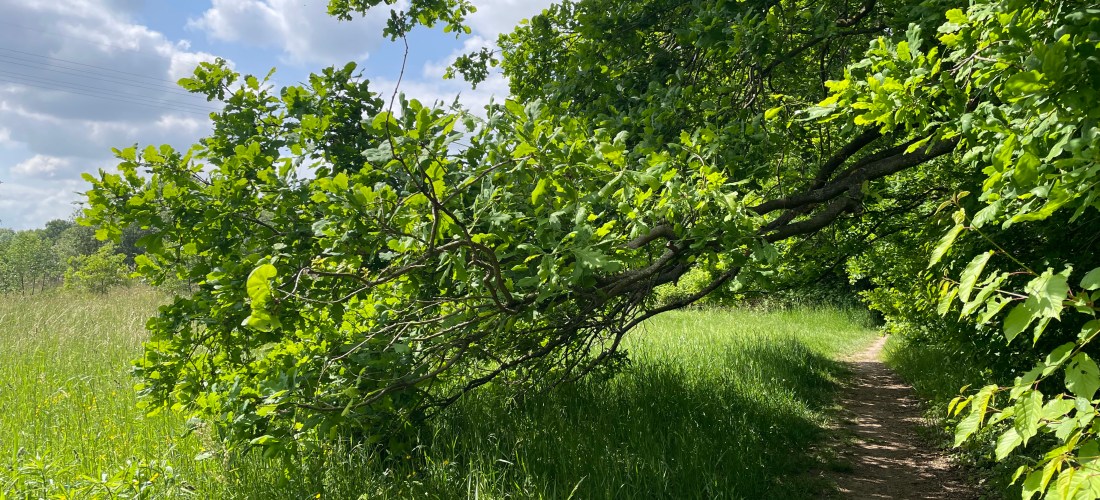 Bevor ich L von der Schule abholte, lief ich den vorgestern entdeckten Waldweg entlang. Ich kam heute aus der anderen Richtung, bog von der Straße kommend in den Waldweg ab und stellte schnell fest, dass ich beim letzten Mal schon fast bis zum Ende gelaufen war. Von der Schönheit meiner Umgebung war ich wieder sehr begeistert. Was für ein herrlich ruhig gelegener Weg inmitten der Stadt.