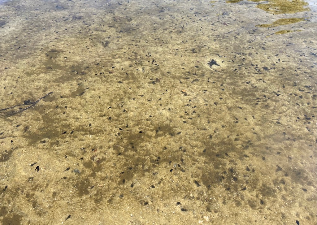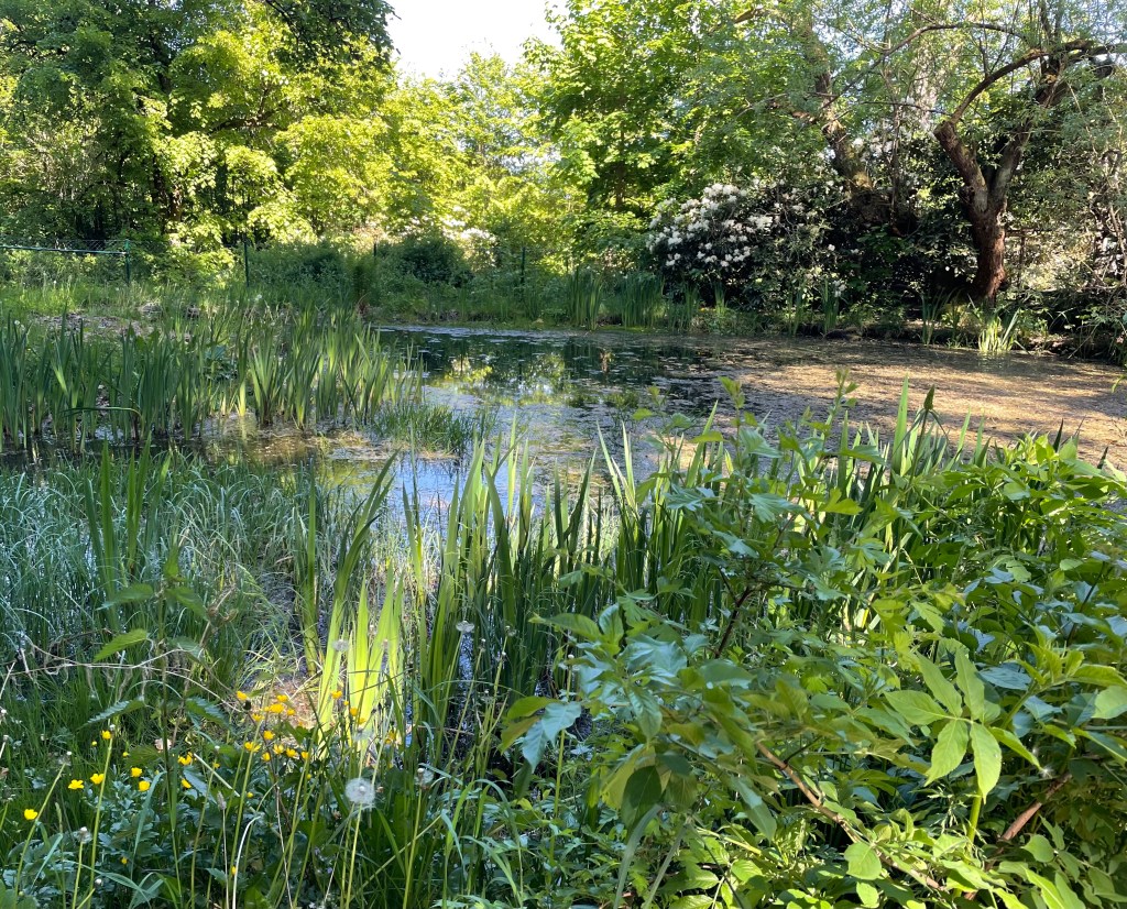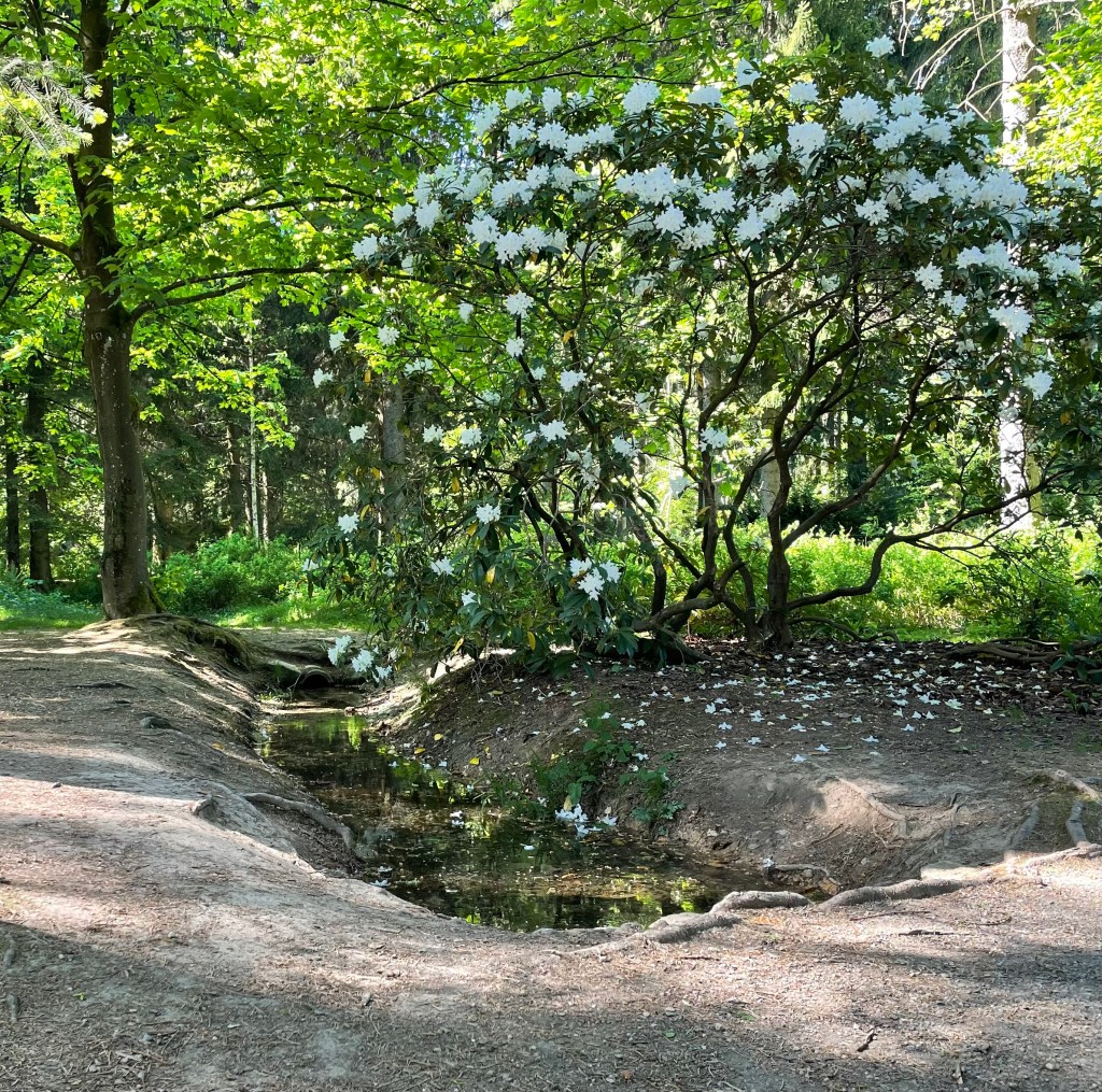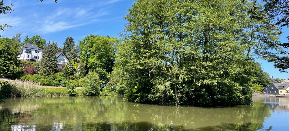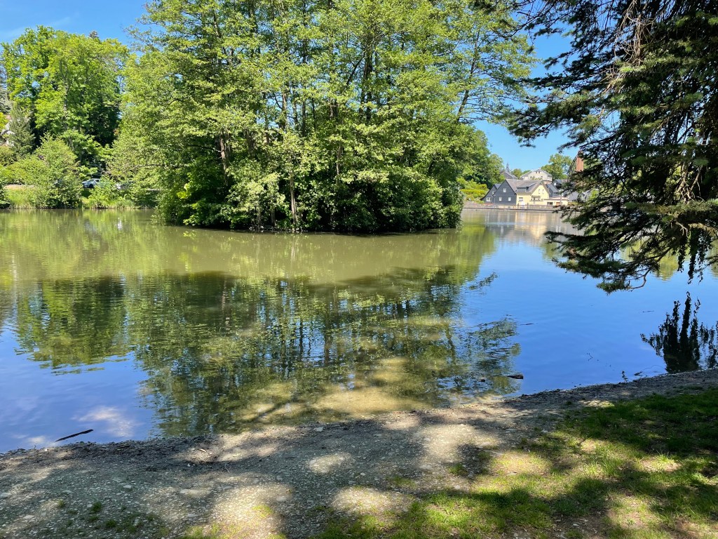 Einige Zeit später fuhren wir mit den Fahrzeugen weiter nach Grünhain-Beierfeld und liefen zum Teich in der Nähe des Kurhauses. Die Kinder kneippten durchs Wasser und sammelten in ihren Keschern Kaulquappen, die sie zwischenzeitlich in einem Eimer voller Wasser sammelten und anschließend wieder freiließen. L zeigte allen, wie gut sie mittlerweile ein Rad schlagen kann.