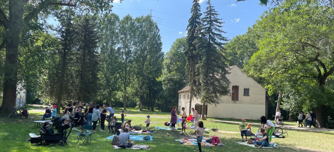 Nach der entspannenden Massage arbeitete ich weiter, ehe ich nachmittags Äpfel und Pfirsiche in kleine Stücke schnitt, die Kirschen abwusch und meinen Rucksack für das Picknick, an welchem alle Kinder in Ls Klasse, deren Eltern, ein Erzieher, eine Studentin und zwei Lehrerinnen teilnehmen, packte. Danach machte ich mich auf den Weg zur Schule, um L abzuholen. Wir verstauten den schweren Ranzen, denn heute gab es sämtliche Bücher mit nach Hause, im Auto und machten uns zu Fuß auf den Weg zum Torhaus Dölitz, dem Ort, an dem das Picknick stattfinden sollte.