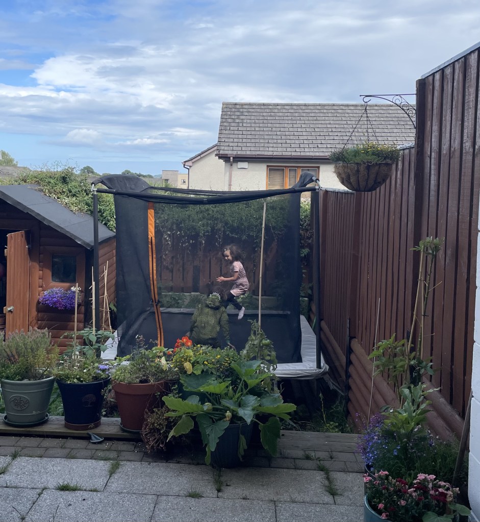 Als wir irgendwann ins Haus zurückkehrten, ruhte ich mich ein wenig aus und las. L und J verzogen sich direkt wieder auf das Trampolin.