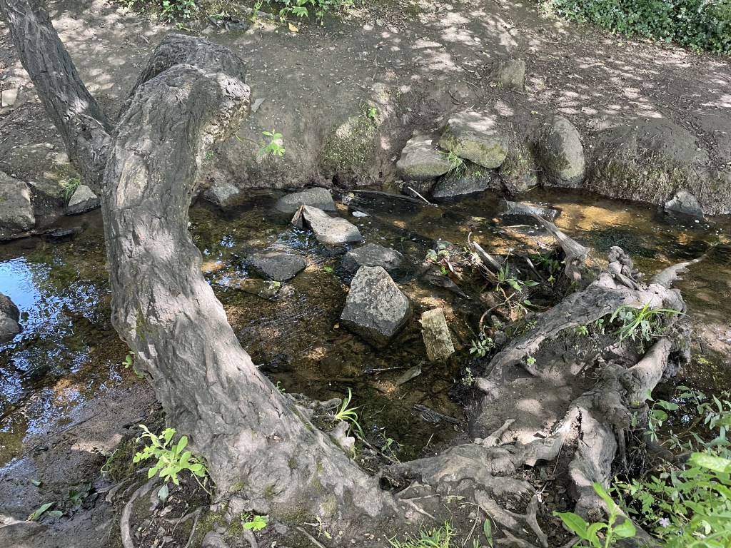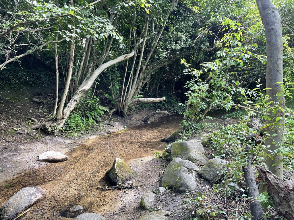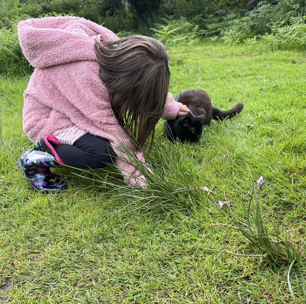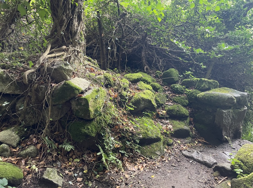 Der Knocksink Wood, den wir anschließend besuchten, war so unfassbar grün und dicht bewachsen, dass ich gar nicht mehr aufhören wollte, Fotos zu machen. Der Fluss enthielt Katzengold (Pyrit) und schimmerte (vermutlich wegen eines hohen Eisengehalts) rötlich. L und J wateten ein wenig durch ihn hindurch, J barfuß und L in ihren Gummistiefeln. Gegen Ende des Weges kletterten die Kinder noch einen sehr steilen Hügel hinauf.