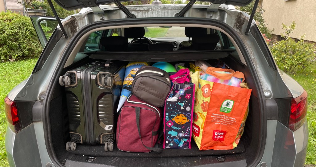 Nein, wir ziehen nicht um. Wir fahren lediglich für eine Woche in den Urlaub. Es ist immer wieder erstaunlich, was sich alles so an Gepäck ansammelt. Einen Großteil der Sachen bekam ich im Kofferraum unter. Der Rest wurde auf der Rücksitzbank verteilt.