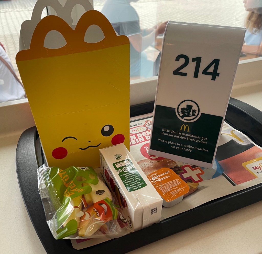 In Grimma machten wir nach etwa zwanzig Minuten Fahrt unsere Mittagspause. L sah von der Autobahn aus das Restaurant zur Goldenen Möwe und so stand schnell fest, was wir essen würden. Für mich gab es nur sechs vegane Nuggets und Ls Pommesreste. Ich möchte den Urlaub nämlich als Start für eine bewusstere und gesündere Ernährung nutzen. Das Essen bei McDonald’s war quasi eine Art Abschiedsessen.