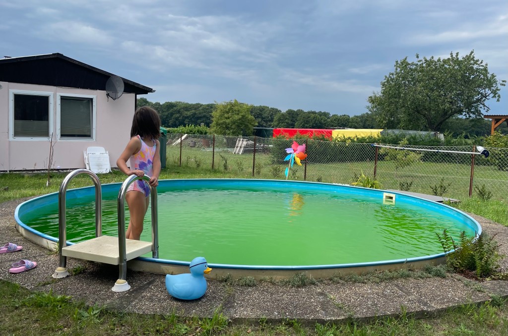 Nach einem kurzen Smalltalk mit dem Vermieter nebst Geldübergabe machte ich mich an das Ausräumen des vollgepackten Autos. Während ich das Gepäck ins Haus trug, dieses in die jeweiligen Räume verteilte und die Betten bezog, hüpfte L schon mal in den Pool.