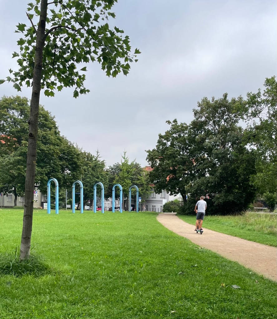 Wir drehten eine Runde und besuchten zwei Spielplätze. Als R hauptsächlich für T und J für zwanzig Minuten einen E-Roller auslieh, sah ich meine Zeit gekommen: Ich sprang über meinen Schatten, schob meine Ängste und Vorbehalte ganz weit nach hinten, stieg auf den E-Roller und fuhr (langsam) eine große Runde. Ob ich mir zutrauen würde, damit im Straßenverkehr zu fahren, weiß ich nicht, aber ich bin wirklich sehr stolz auf mich. Es machte großen Spaß.