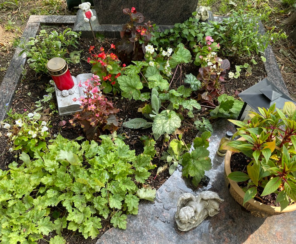 Bevor L und ich am Nachmittag zurück nach Markkleeberg fuhren, besuchten wir Ms Grab auf dem Erfurter Hauptfriedhof. Der Tornado schien dort oben nicht gewütet oder zumindest keine großen Schäden angerichtet zu haben. Wir säuberten das Grab von herabgefallenen Nadeln und einem Ast und gossen die Pflanzen.